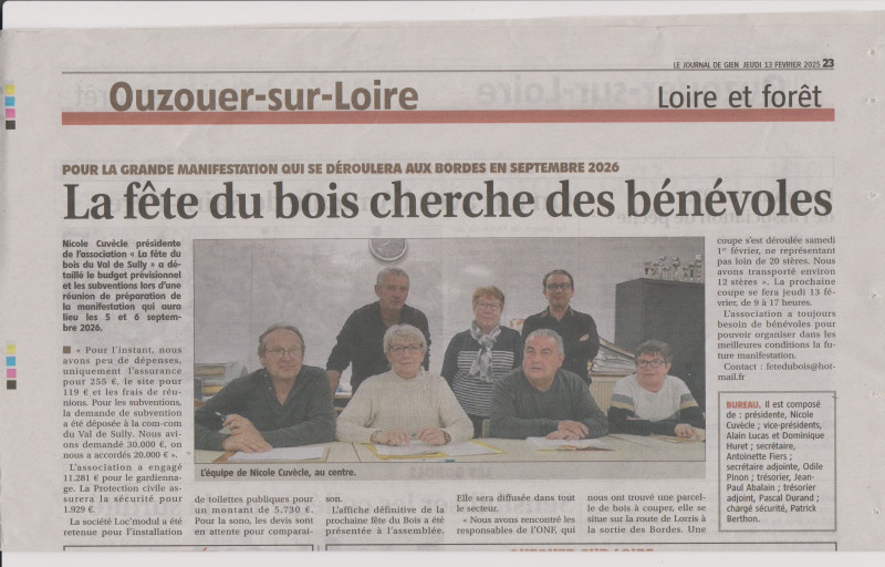 Le nouveau bureau de la Fête du Bois du Val de Sully élu lors de l'assemblée générale du 6 avril 2023 pour l'organisation de la prochaine édition 2026